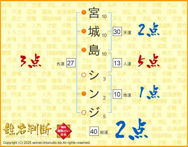 宮城島シンジさんの天運は30画の2点!