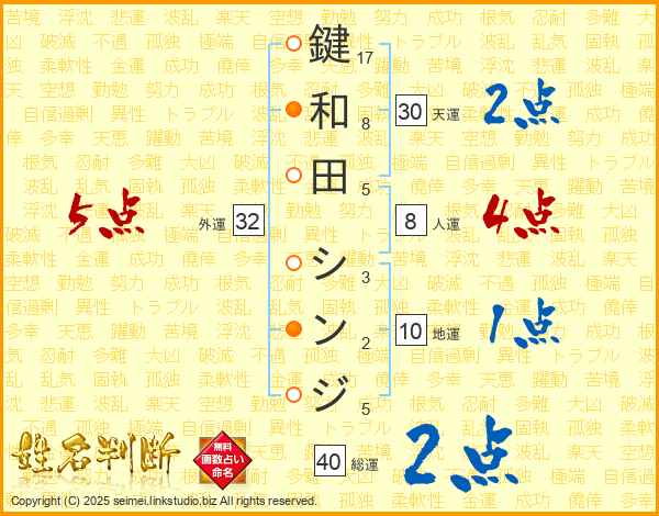 鍵和田シンジさんの総運は40画の2点!