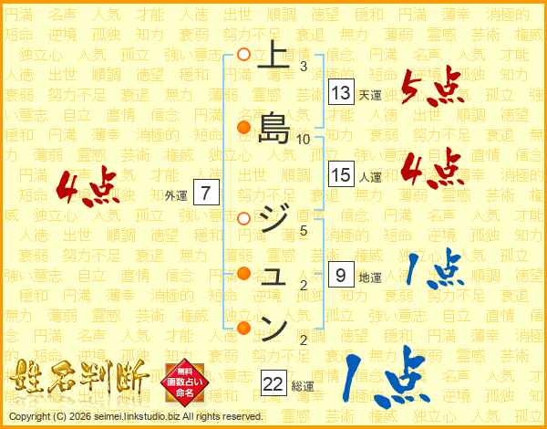 上島ジュンさんの天運は13画の5点!