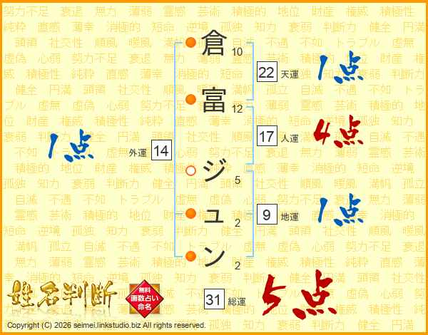 倉富ジュンさんの総運は31画の5点!
