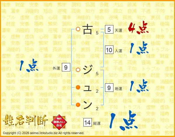 古ジュンさんの総運は14画の1点!