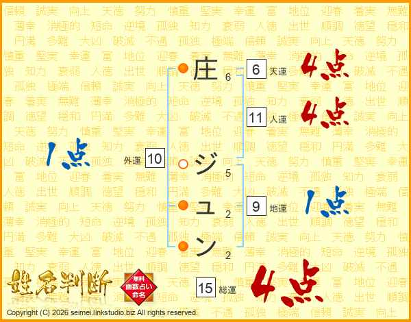 庄ジュンさんの総運は15画の4点!