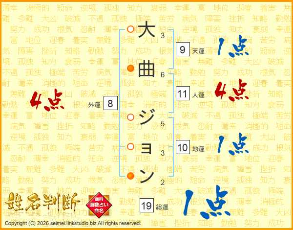 大曲ジョンさんの人運は11画の4点!