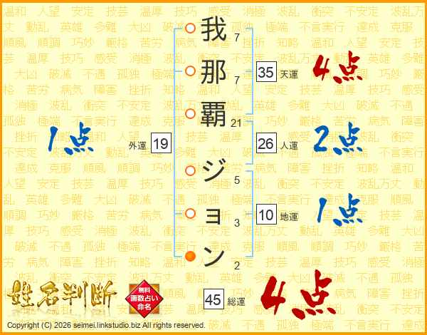 我那覇ジョンさんの総運は45画の4点!