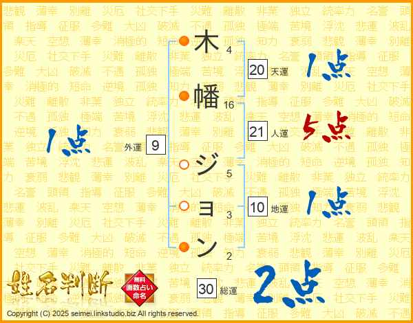 木幡ジョンさんの人運は21画の5点!