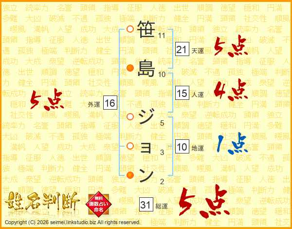 笹島ジョンさんの総運は31画の5点!