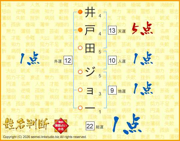 井戸田ジョーさんの総運は22画の1点!