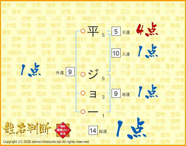 平ジョーさんの総運は14画の1点!