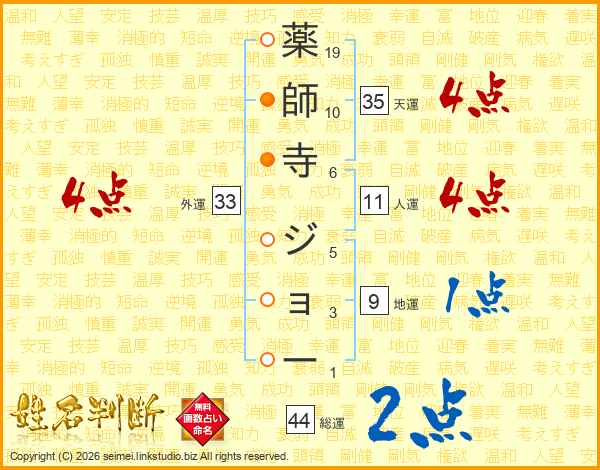 薬師寺ジョーさんの総運は44画の2点!