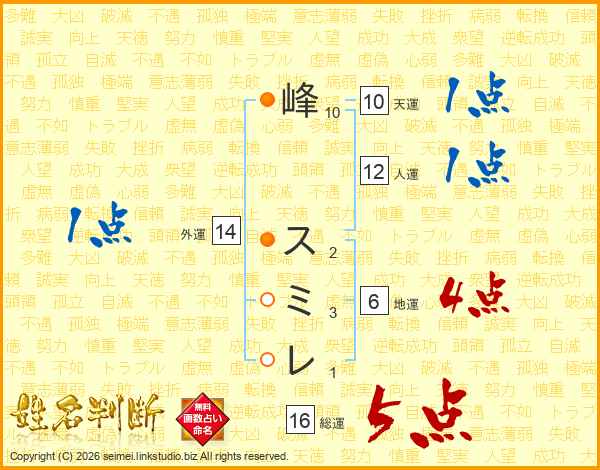 峰スミレさんの外運は14画の1点!