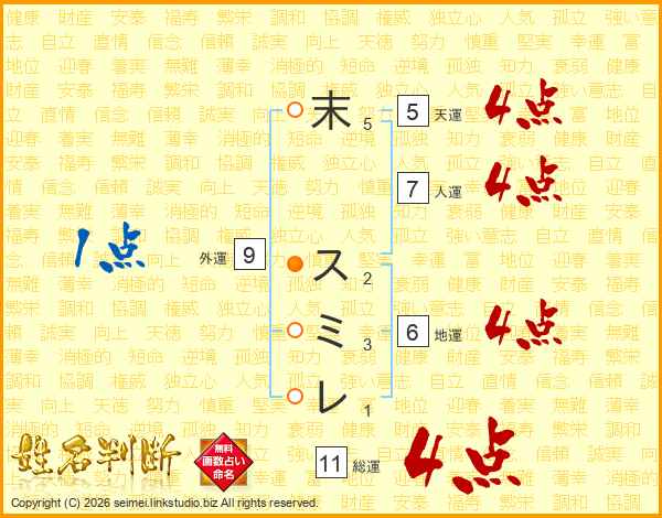 末スミレさんの総運は11画の4点!