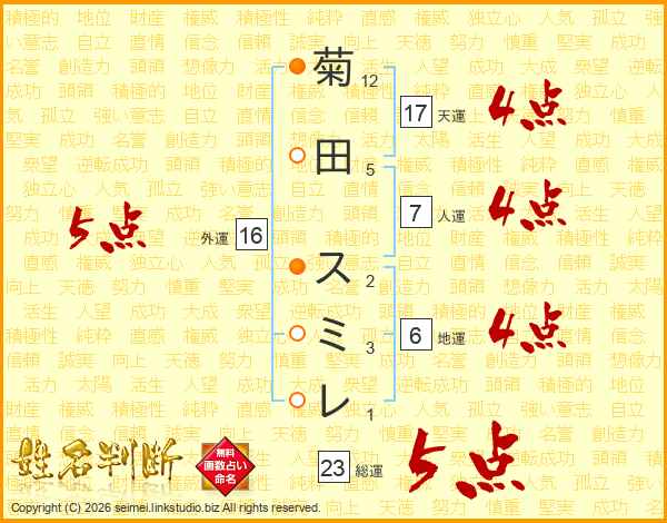菊田スミレさんの外運は16画の5点!