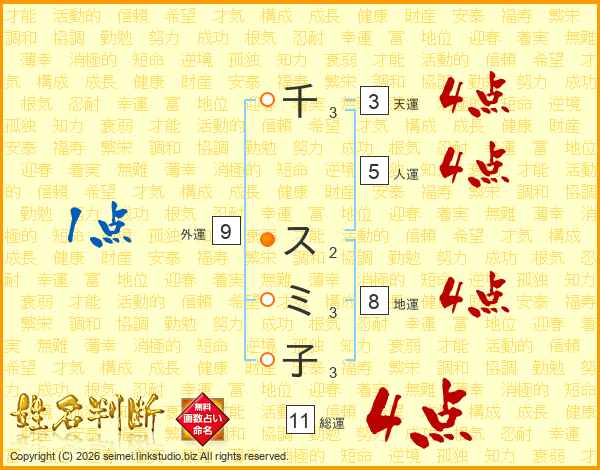 千スミ子さんの総運は11画の4点!