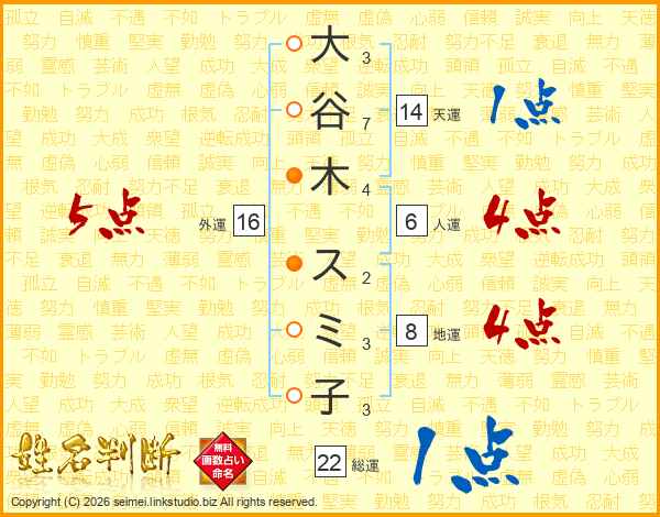 大(3画)谷(7画)木(4画) ス(2画)ミ(3画)子(3画)