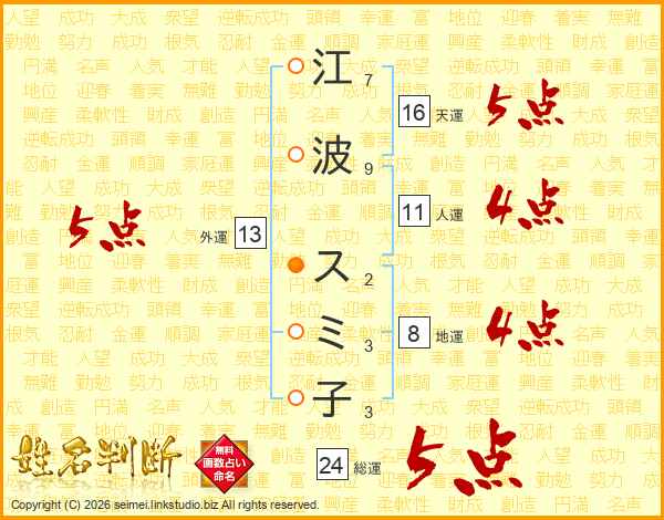 江波スミ子さんの天運は16画の5点!
