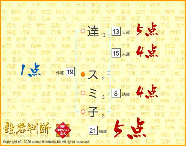 達スミ子さんの総運は21画の5点!