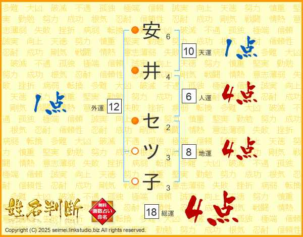 安(6画)井(4画) セ(2画)ツ(3画)子(3画)