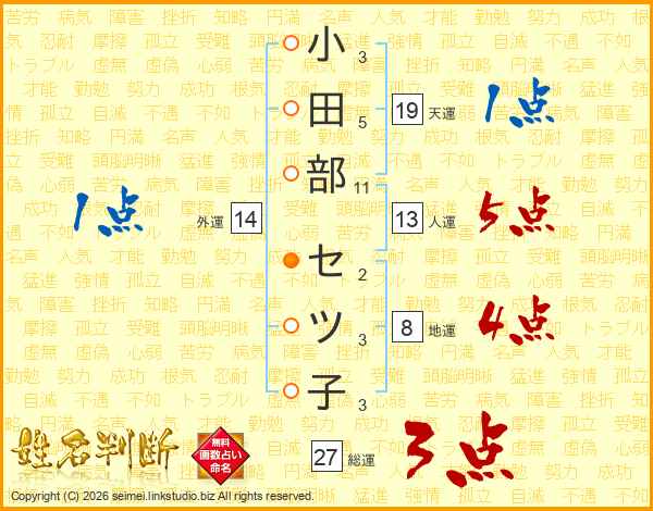 小田部セツ子さんの総運は27画の3点!