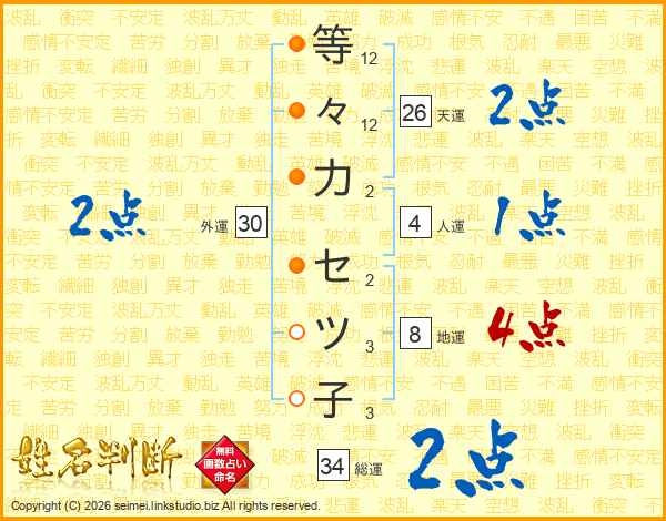 等々力セツ子さんの天運は26画の2点!