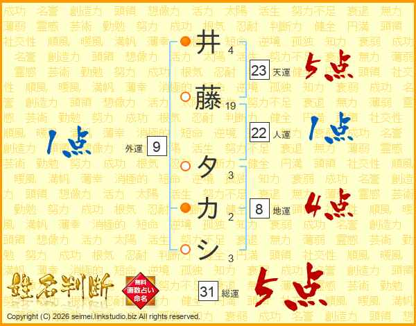 井藤タカシさんの総運は31画の5点!