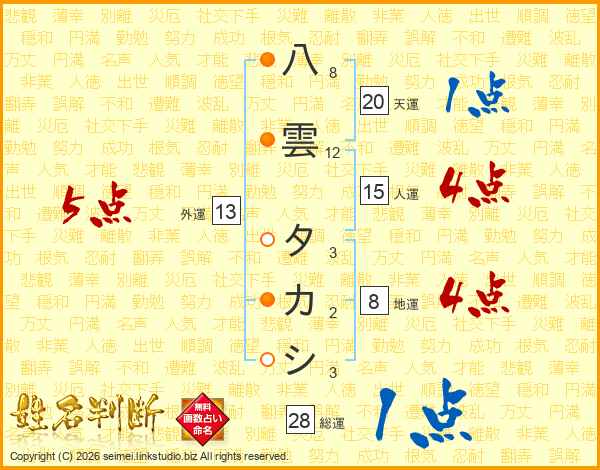 八雲タカシさんの外運は13画の5点!