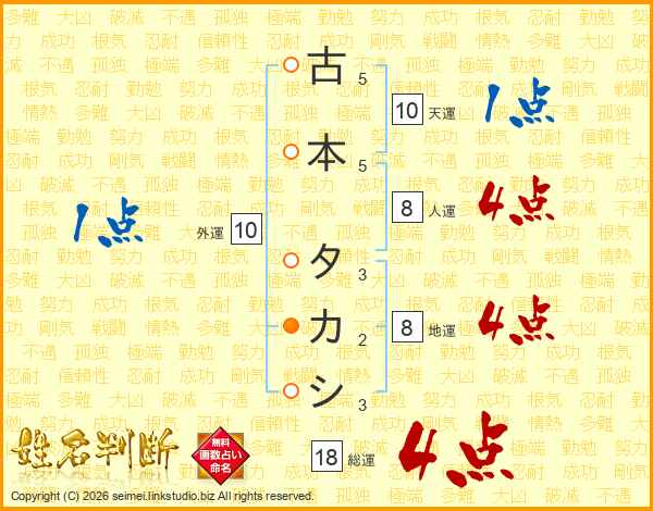 古本タカシさんの総運は18画の4点!