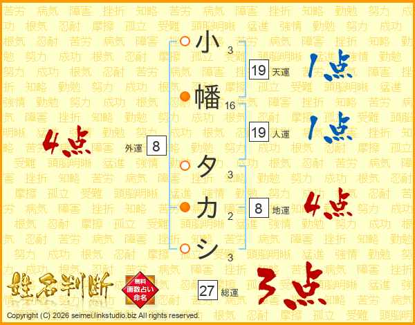 小(3画)幡(16画) タ(3画)カ(2画)シ(3画)