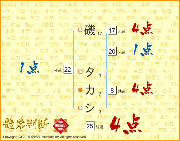 磯タカシさんの総運は25画の4点!