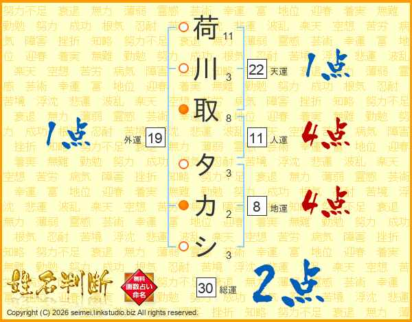 荷川取タカシさんの総運は30画の2点!