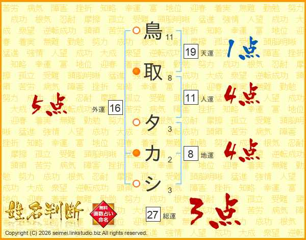 鳥取タカシさんの総運は27画の3点!
