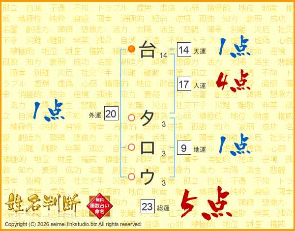 台タロウさんの総運は23画の5点!