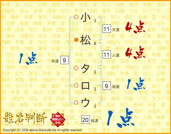 小松タロウさんの天運は11画の4点!