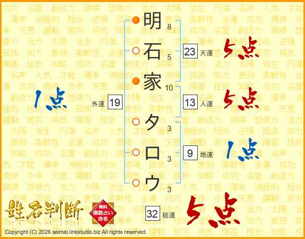明石家タロウさんの総運は32画の5点!