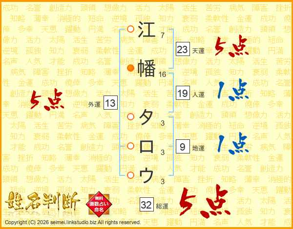 江幡タロウさんの総運は32画の5点!