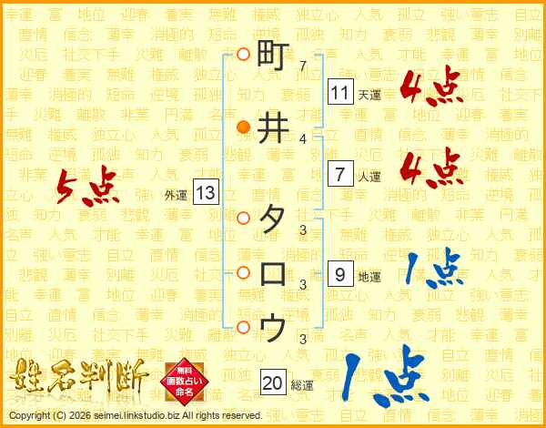 町井タロウさんの総運は20画の1点!