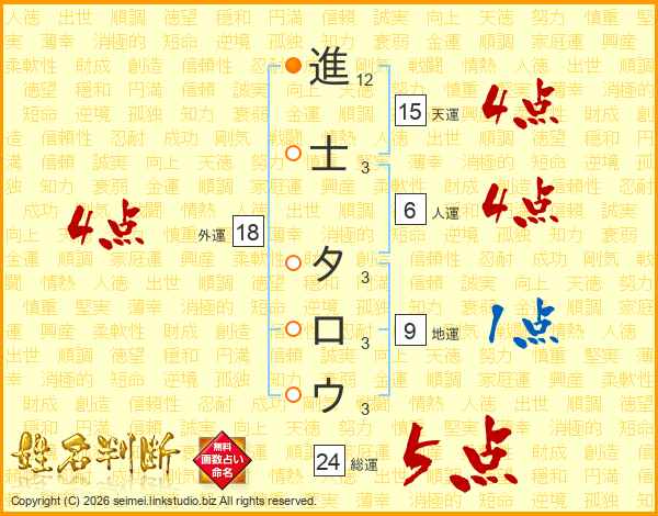 進(12画)士(3画) タ(3画)ロ(3画)ウ(3画)
