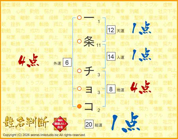 一条チョコさんの人運は14画の1点!
