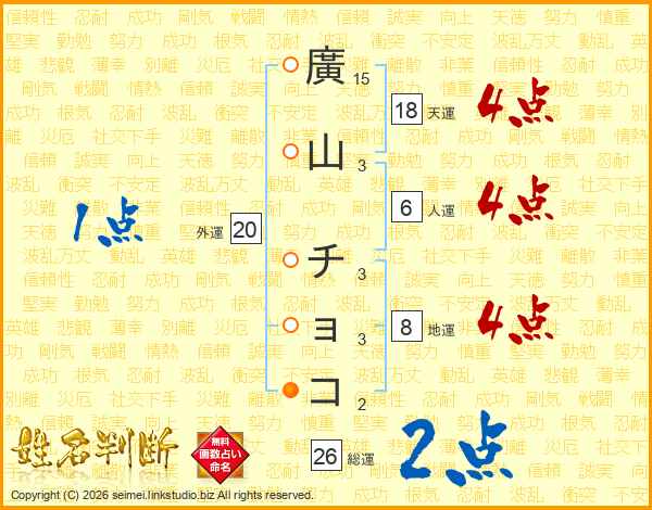廣山チョコさんの総運は26画の2点!
