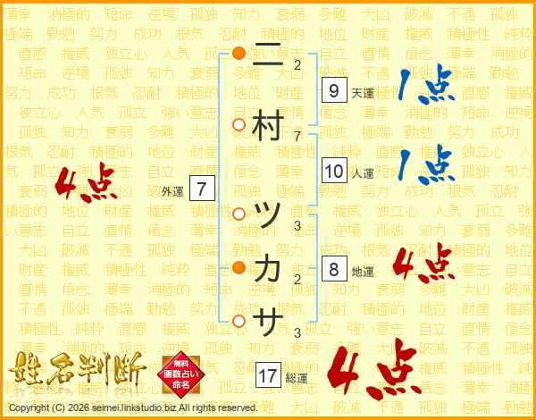 二(2画)村(7画) ツ(3画)カ(2画)サ(3画)