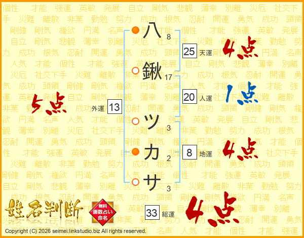 八鍬ツカサさんの総運は33画の4点!