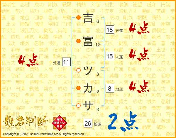 吉富ツカサさんの総運は26画の2点!