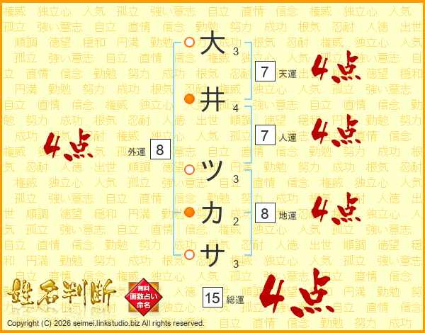 大井ツカサさんの総運は15画の4点!