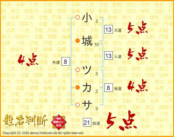 小城ツカサさんの天運は13画の5点!