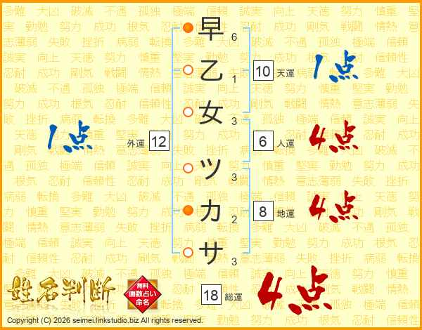 早乙女ツカサさんの総運は18画の4点!