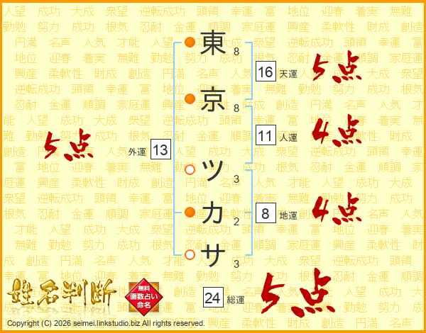 東京ツカサさんの総運は24画の5点!