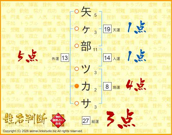 矢ヶ部ツカサさんの外運は13画の5点!