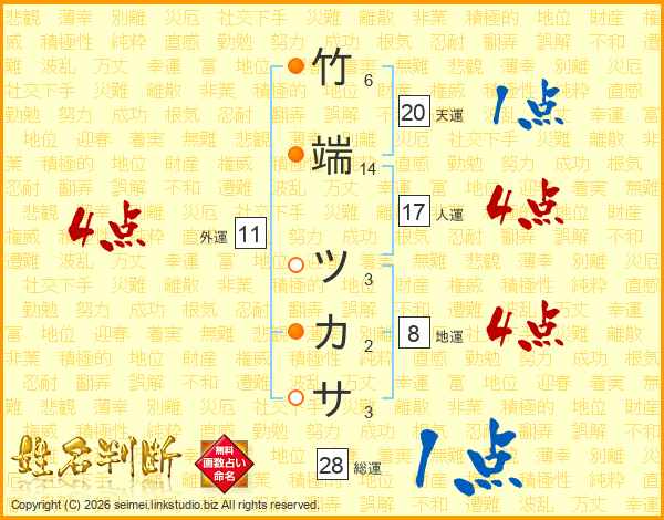 竹端ツカサさんの総運は28画の1点!