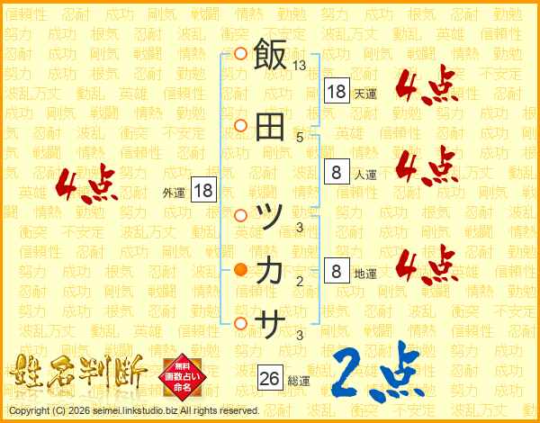 飯田ツカサさんの総運は26画の2点!