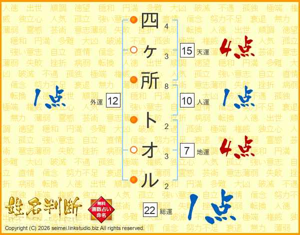 四ヶ所トオルさんの総運は22画の1点!