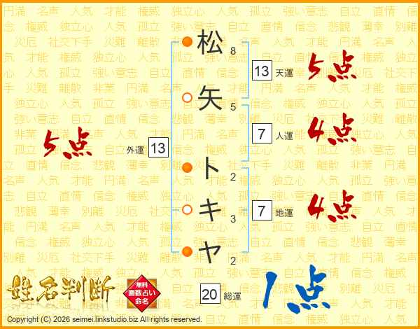 松矢トキヤさんの外運は13画の5点!